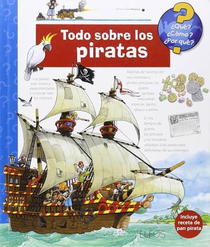 “Todo sobre los piratas” é un libro de consulta e divulgación que achega aos lectores máis novos ao fascinante mundo dos piratas. A través de ilustracións detalladas e textos sinxelos, o libro explora aspectos importantes da vida pirata, como os barcos, os tesouros, as leis dos mares e as aventuras máis coñecidas. Tamén inclúe información sobre como eran os piratas, como vivían, e cal era a súa relación co comercio e a exploración. Perfecto para nenos curiosos que queren descubrir todo o que rodea a estas figuras míticas do mar.